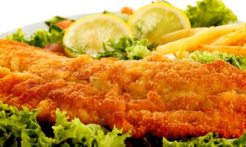 Filé de peixe à milanesa, Arroz, batata frita e pirão