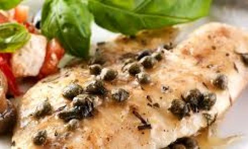 Filé de peixe grelhado na manteiga com alcaparras e champion, arroz,batata sauté ou fritas e pirão